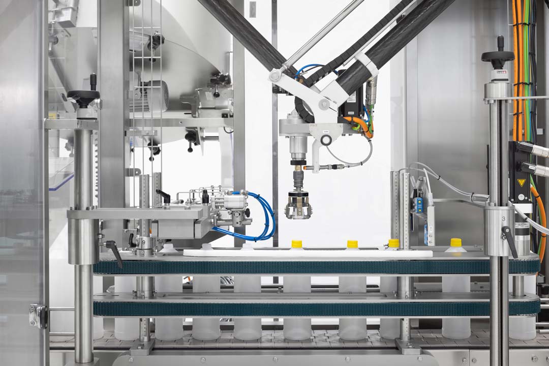 Verschlusszuführung: Zuverlässig horizontal, Übergabe in den Schraubkopf über Pick and Place